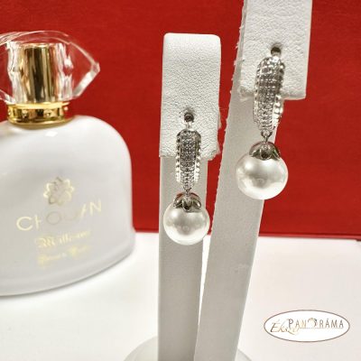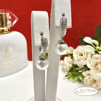 White Gold Filled anti-allergén, nikkel és ólom mentes ezüst színű fülbevaló gyöngy és kristályos díszítéssel.