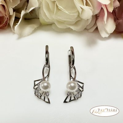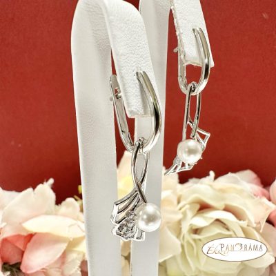 White Gold Filled anti-allergén, ezüst színű, kristályokkal díszített lógós fülbevaló, kristály és gyöngy díszítéssel.