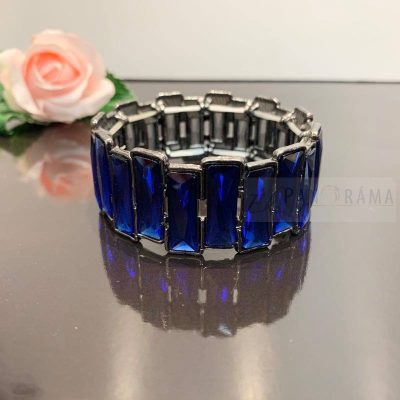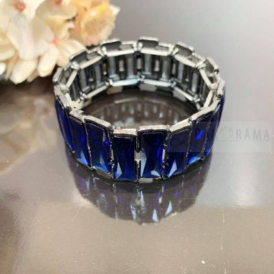 Gyönyörű üvegkristállyal díszített karkötő. Méretre igazodik. Egymás utáni kék üvegkristályokból áll össze ez az egyszerű, de mégis mutatós karkötő.