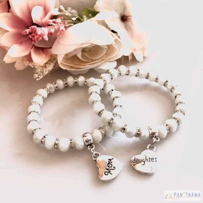 A csomagban 2 db karkötő található! Az egyik szívecskén Mom felirat, a másikon Daughter felirat található, ezért ideális ajándék lehet lányunk vagy édesanyánk részére.