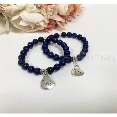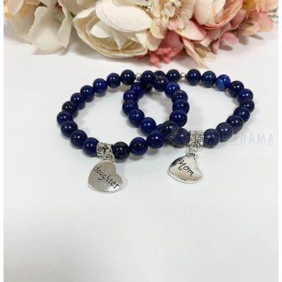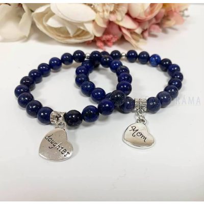 Lápisz-Lazuli ásvány, anya-lánya páros karkötő szívecskés medállal.