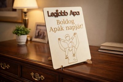 Lepd meg édesapádat egy különleges, 3D hatású Apák napi táblával! A gravírozott minták részletgazdag kidolgozással készülnek, elegáns fehér színben. Külön lányos és fiús verzióban választható, így a tábla tökéletesen tükrözi a gyermek és apa közötti kapcsolatot. A modern, mégis megható dizájn minden apát lenyűgöz. Ez az egyedi ajándék nemcsak dekoráció, hanem örök emlék is, ami minden nap emlékezteti az apákat arra, milyen fontos szerepet töltenek be gyermekeik életében. Válaszd a stílust és a személyességet – válaszd a gravírozott Apák napi táblát!