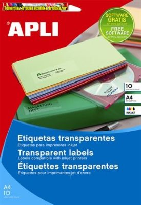 Apli Etikett, 70x37 mm, poliészter, átlátszó, 24címke/lap 10lap/cs 240 etikett/csomag LCA10051
