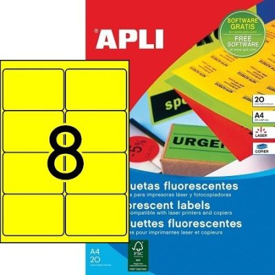• APLI No. 02874 neon sárga színű 99,1 x 67,7 mm méretű, lézernyomtatóval nyomtatható, öntapadós etikett címke, permanens ragasztóval A4-es íven - kiszerelés: 160 címke / 20 ív (LCA2874)