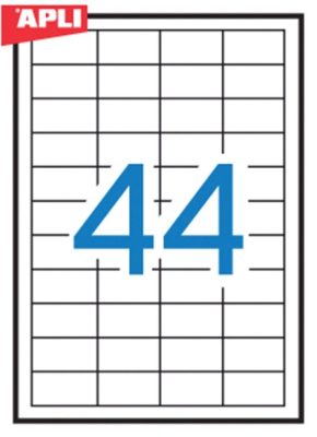 APLI 48,5 x 25,4 mm méretű, fehér színű, matt felületű, univerzális öntapadós etikett címke, A4-es lapon, permanens ragasztóval, hegyes sarkokkal. Rendelési azonosító: APLI 03129.