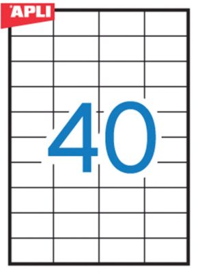 • APLI No. 03130 fehér színű 52,5 x 29,7 mm méretű, univerzálisan nyomtatható, öntapadós etikett címke, permanens ragasztóval A4-es íven - kiszerelés: 4000 címke / 100 ív (LCA3130, LCA1286)
