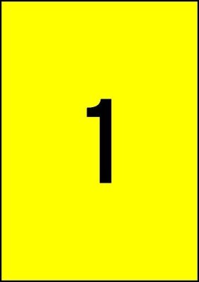 APLI No. 11747 neon sárga színű 210 x 297 mm méretű, lézernyomtatóval nyomtatható, öntapadós etikett címke, permanens ragasztóval A4-es íven - kiszerelés: 100 címke / 100 ív (LCA11747)