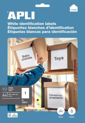 • APLI No. 12917 fehér színű 210 x 297 mm méretű, univerzálisan nyomtatható, öntapadós etikett címke, permanens ragasztóval A4-es íven - kiszerelés: 10 címke / 10 ív (LCA12917)