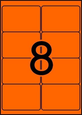 • APLI No. 12986 neon narancssárga színű 99,1 x 67,7 mm méretű, lézernyomtatóval nyomtatható, öntapadós etikett címke, permanens ragasztóval A4-es íven - kiszerelés: 800 címke / 100 ív (LCA12986)