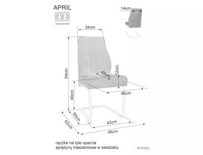 Az April Vardo szék a modern dizájn és a kényelem tökéletes ötvözete. A curry színű Vardo szövettel kárpitozott ülés és háttámla kellemes tapintású és tartós. A matt fekete fém váz szánkótalpas kialakítása egyedi megjelenést kölcsönöz a széknek. A háttámla praktikus fogantyúval rendelkezik, ami megkönnyíti a szék mozgatását.