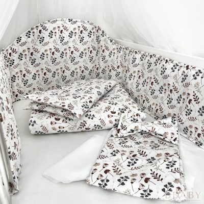 • Apró virágok barna – 4 részes babaágynemű szett természetes hangulatú virágmintával