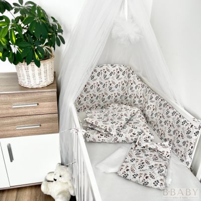 Az Apró virágok barna 4 részes babaágynemű szett harmonikus megjelenésével, puha tapintásával és természetes anyagaival megnyugtató közeget teremt a kisbabád számára – a legelső pillanatoktól kezdve