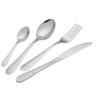 Az EME Posaterie Arabesque evőeszköz készlete egy elegáns és kifinomult evőeszköz szett, amely 18/10 rozsdamentes acélból készült. A kollekció tükörfényes felülete és finom arabeszk mintája különleges luxusérzetet biztosít. Az evőeszközök 1,8 mm vastagok, ami garantálja a tartósságot és hosszú élettartamot. Az Arabesque kollekció különösen alkalmas éttermek, szállodák és catering szolgáltatások számára, ahol a kifinomult megjelenés és a kiváló minőség fontos szempontok.Felhasználási lehetőségek: Éttermi használat: Kiváló minőségű és elegáns evőeszközök professzionális használatra. Szállodák: Prémium megjelenés, amely tökéletesen illik bármilyen elegáns étkezőbe. Catering szolgáltatások: Stílusos és tartós evőeszközök nagyobb rendezvényekhez.A készlet tartalma: 6 db evőkanál, 6 db evővilla, 6 db evőkés, 6 db teáskanál.A minőségi evőeszköz készletek a kínálatunkban ideálisak mindennapi használatra vagy különleges alkalmakra. Evőeszközkészlet vásárlása háztartások és vendéglátóhelyek számára számos előnnyel jár. Egyrészt egy teljes evőeszköz készlet vásárlása biztosítja, hogy minden evőeszköz ugyanazzal a dizájnnal és stílusban készül, ami elegáns és profi megjelenést kölcsönöz az étkezési helyzetekben. Másrészt egy teljes evőeszközkészlet gyakran kedvezőbb áron kapható, mint ha az evőeszközöket külön-külön vennénk meg. Ezenkívül egy jó minőségű készlet hosszútávon is megtérülhet, mivel kevesebbszer kell cserélni. Amikor egy teljes evőeszközkészletet vásárolunk, biztosak lehetünk benne, hogy minden szükséges darabot megkapunk, legyen szó villákról, késekről, kanalakról vagy speciális eszközökről,.