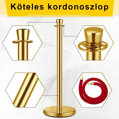 Olcsó köteles kordonoszlopaink igazi prémium kategóriás, elegáns kivitelűek. A kordonoszlopok választhatóak króm, vagy titánium gold bevonattal. A köteles kordonoszlopokhoz különböző vastagságú és hosszúságú kordonkötelek közül választhat. A hagyományos kordonkötelek több színben is kaphatóak, hosszúságuk 160 centiméter, a kötélvégek minőségi króm vagy titánium gold karabínerekkel kerülnek gyártásra. Külön ajánlunk 180 centi hosszú vastag bársony köteleket, melyek kielégítik a legszigorúbb minőségi elvárásokat is. A köteles kordonoszlopokra ugyanúgy, mint a szalagos kordonoszlopokra utólag könnyen felszerelhető információs táblákat is ajánlunk mind króm, mind titánium gold kivitelben. Természetesen biztosítjuk egyedi gyártásban különleges színü kötelek választását bármely hosszúságban is. Az egyedi igények azonban felárásak. Az oszlopokat kordonbérlés menüpontnál akár ki is kölcsönözheti!