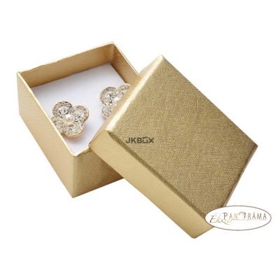 Arany színű papírdoboz masnival gyűrűk vagy fülbevalók számára.