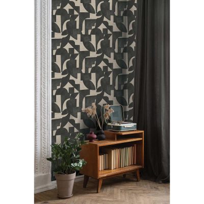 Arboretum - Geometriai mintás fekete-bézs tapéta 91711