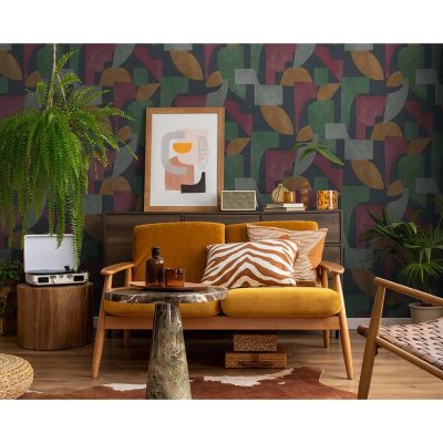 Arboretum - Geometriai mintás kék-narancs tapéta 91712