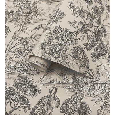 Arboretum - Japán bézs-ezüst daru madaras tapéta 91703