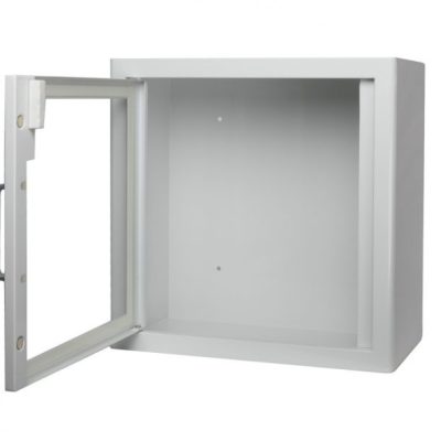 A szekrény univerzális kialakításának köszönhetően minden márkájú defibrillátor tárolására alkalmas. Akusztikus riasztóval, amely növeli a biztonságot és segít megelőzni az illetéktelen használatot.