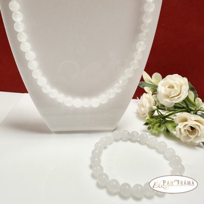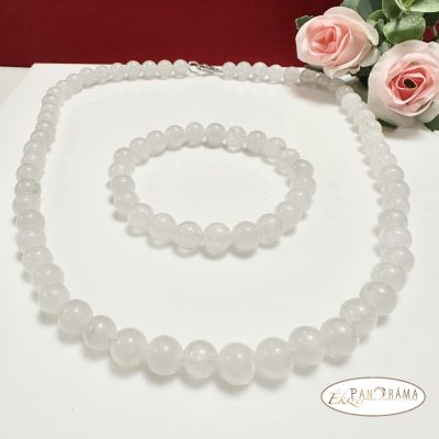 Fehér színű hegyikristály ásványkő gyöngysor és karkötő szettben!