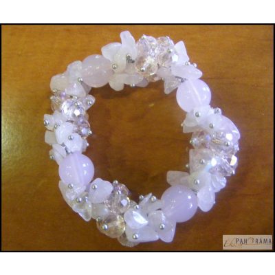 Fehér és áttetsző ásványból fűzött széles divatos gumis karkötő!