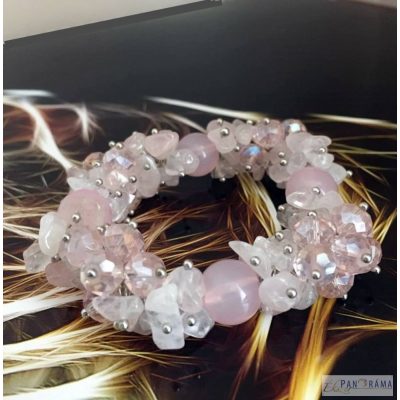 Fehér és áttetsző ásványból fűzött széles divatos gumis karkötő!