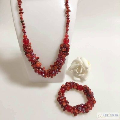 Bordó, piros színű ásványokkal díszített divatos nyakék és karkötő szettben!