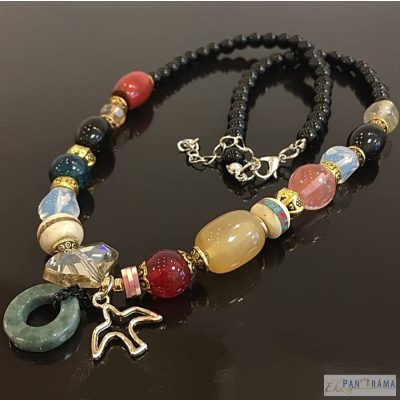 Több fajta ásvány kőből álló, divat nyaklánc.