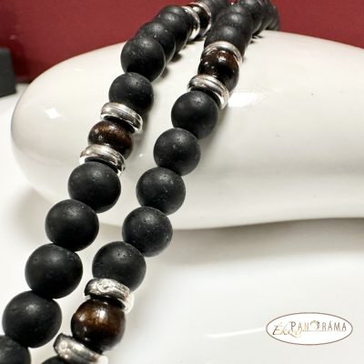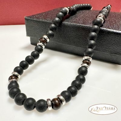 NYAKLÁNC,matt ónix ásványkő gyöngy, acél díszítéssel és szerelékkel