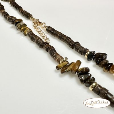 NYAKLÁNC, tigrisszem ásványkő gyöngy, aranyozott acél díszítéssel és szerelékkel