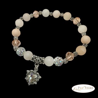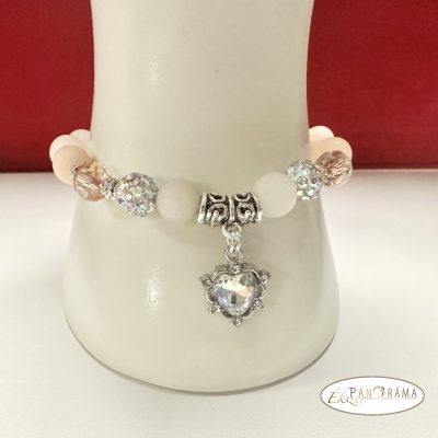 Ásványkő sztreccs karkötő Aventurin és más díszítő gyöngyökkel, ezüst színű betét díszítéssel, kristályos szív medállal