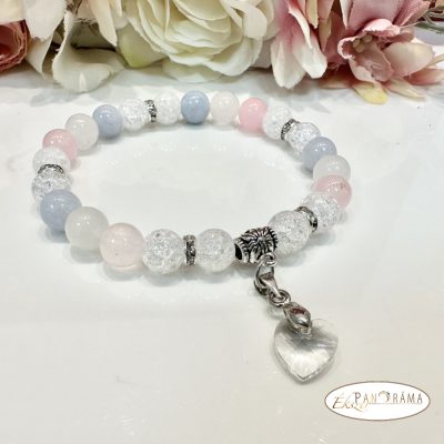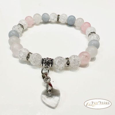 Ásványkő sztreccs karkötő vegyes ásványokkal, kristály szív medállal!
