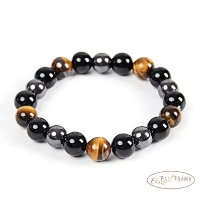 • Ásványkő Karkötő fekete obszidián, hematit és tigrisszem - 8 mm
