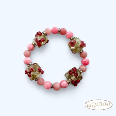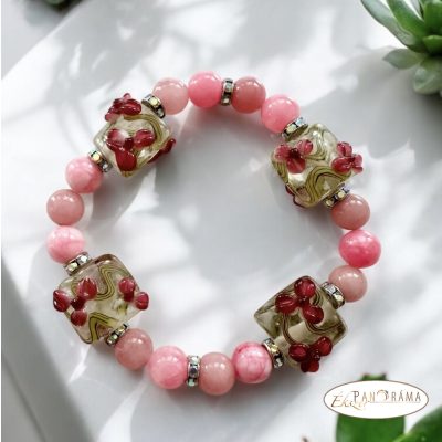 Ásványkő karkötő - rodokrozit üveggyönggyel
