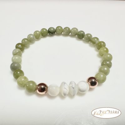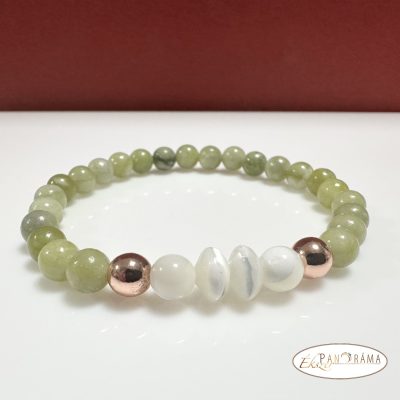 • Ásványkő Karkötő szerpentin zöld kagylóhéjjal - 6 mm