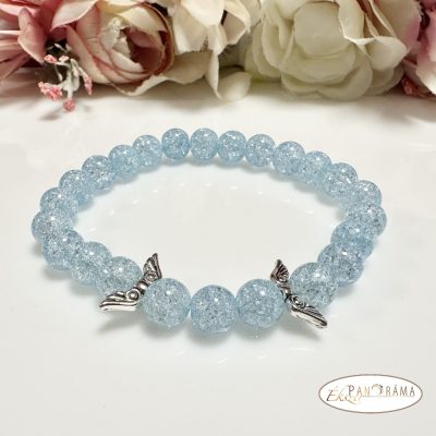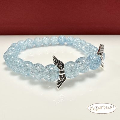 Ásványkő sztreccs karkötő színezett roppantott hegyi kristály gyöngyökkel, ezüst színű angyalszárny betéttel.