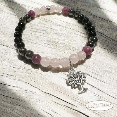 • Ásványkő Karkötől Obsidian, Hematit és Rózsakvarc - életfa