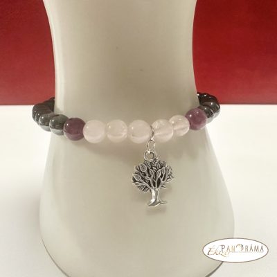 Ásványkő Karkötől Obsidian, Hematit és Rózsakvarc - életfa