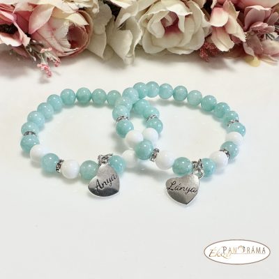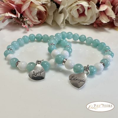 • Ásványkő Páros Karkötő anya és lánya szív lógóval - Jade halványzöld 8 mm