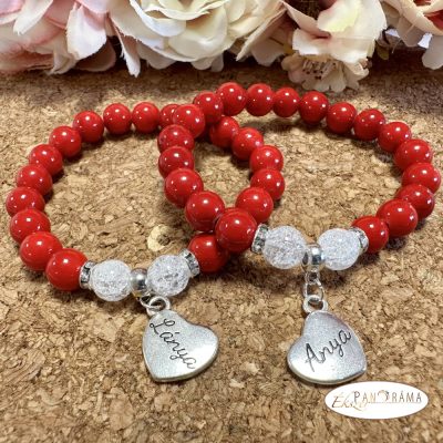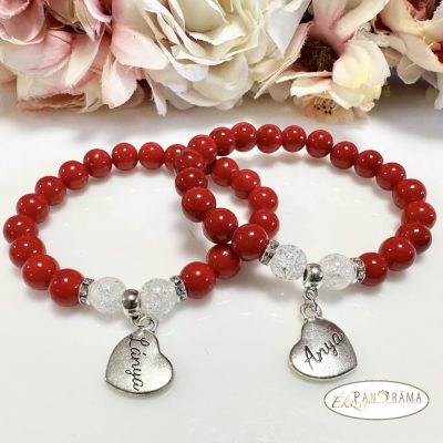 Ásványkő Páros Karkötő anya és lánya szív lógóval - Jade piros 8 mm