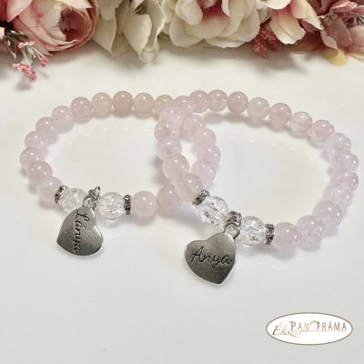 Ásványkő Páros Karkötő anya és lánya szív lógóval - Rózsakvarc 8 mm
