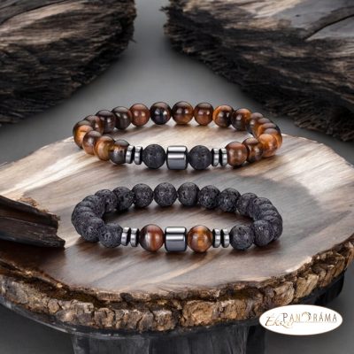 Ásványkő páros karkötő - lávakó és tigrisszem