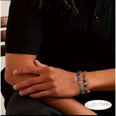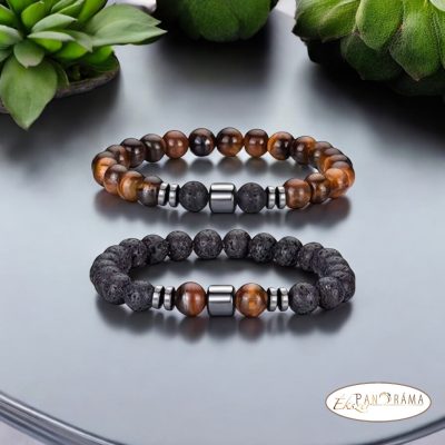 Ásványkő unisex páros karkötő - lávakő és tigrisszem gyöngyökből,hematittal díszített