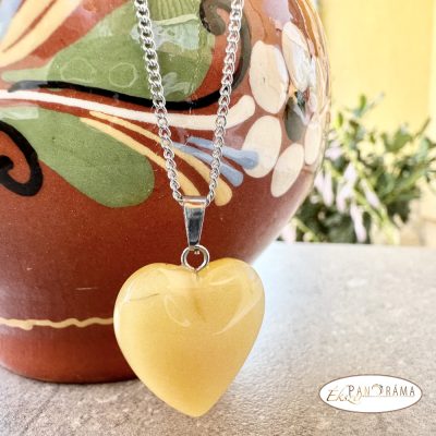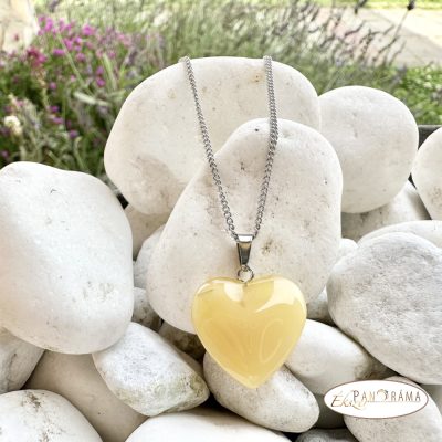 Mézkalcit ásványkő nyaklánc, szív ásvány medállal, acél nyakláncon.