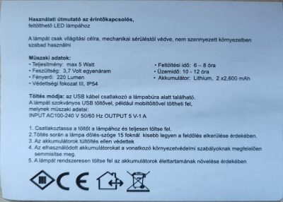 • Töltés: Az akkumulátor USB-ről tölthető, 5V 1A áramfelvétellel, ami rendkívül kényelmes és rugalmas töltési lehetőséget biztosít. Bármilyen standard USB töltővel, power bankkal vagy számítógépes porttal tölthető.