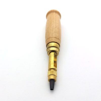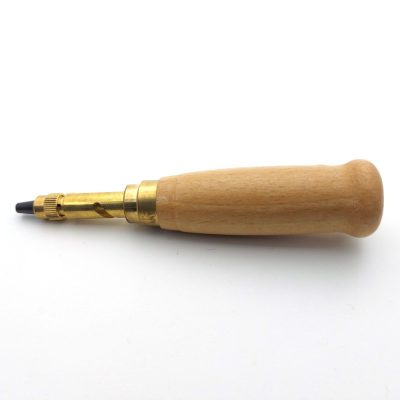 Nyomásra a lyukasztóhegy forog, így gyakorlatilag kivágja a furatot.