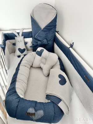 A 7 részes babaágy szett minden alapdarabot tartalmaz, amely a baba komfortjához és a szülők kényelméhez elengedhetetlen: