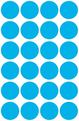 Avery Zweckform 18 mm átmérőjű, kék színű jelölő pötty, jelölő pont. Egy csomagban 4 lapon, összesen 96 darab jelölő címke található.