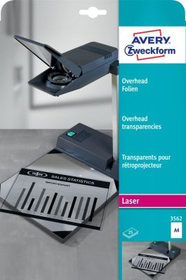 • Avery Zweckform No. 3562 írásvetítő fólia fekete-fehér lézernyomtatóhoz (vastagság: 0,10 mm, méret: A4, 25 ív / csomag)(Avery 3562)