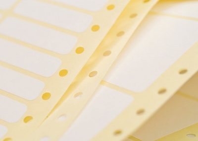 Nyomtatható: mátrix nyomtatókkal nyomtatható (tűs nyomtatókkal nyomtatható) öntapadós leporellós etikett címke.